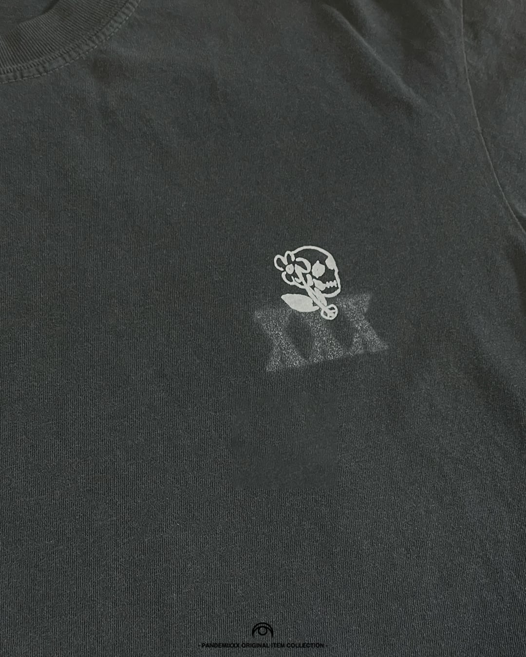 プリントとステンシルを組み合わせたTシャツです。様々なボトムスとのコーディネートが可能です。