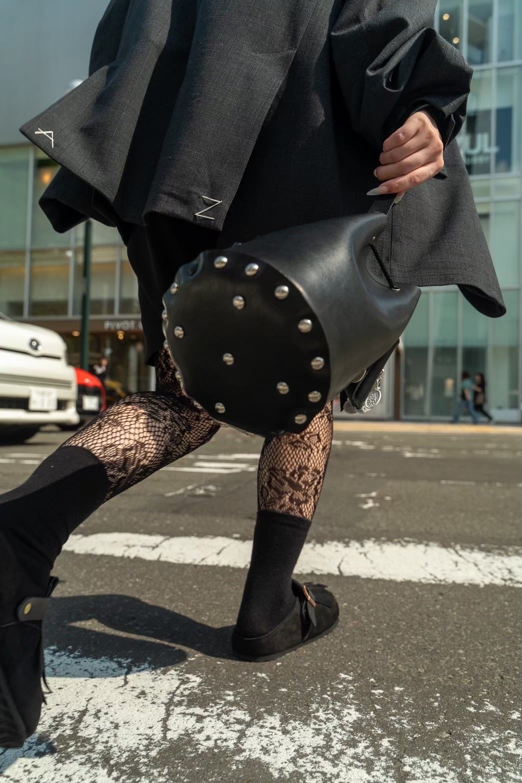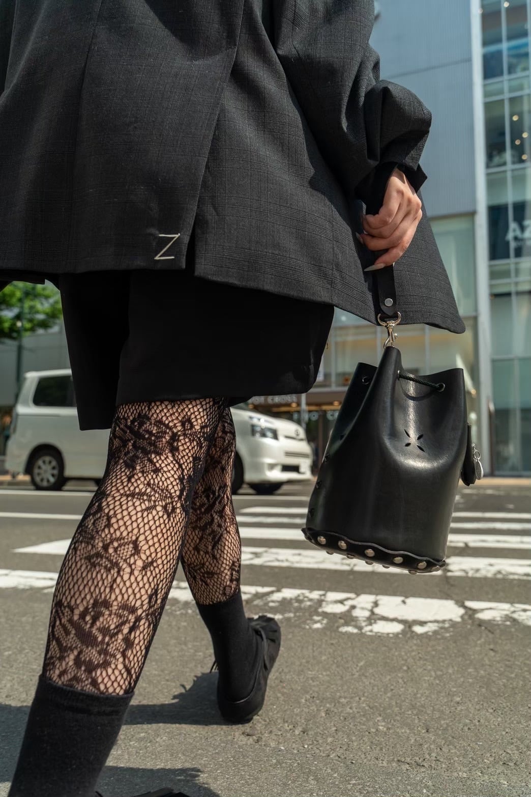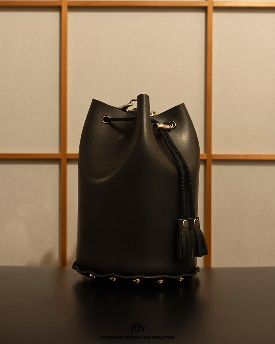 ヌメ革を使用し、黒に染め上げた巾着型のバッグ。シンプルながらも存在感のあるデザインで、どんなスタイルにもマッチします。