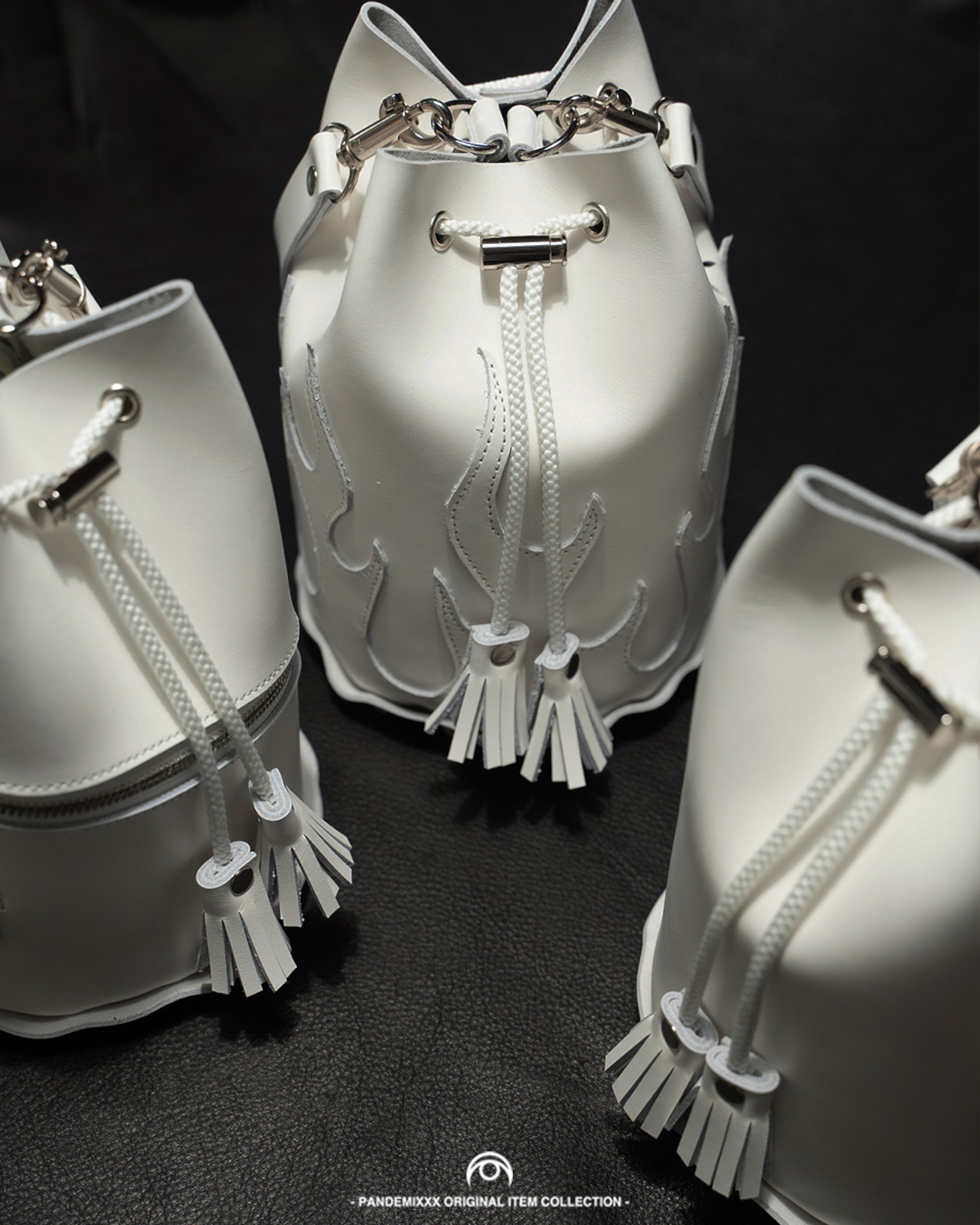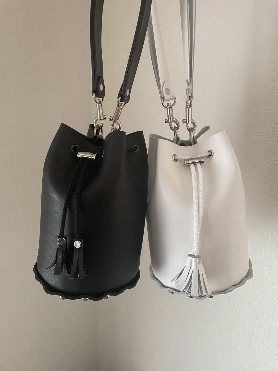 牛革を使用した巾着型のバッグ。シンプルながらも存在感のあるデザインで、どんなスタイルにもマッチします。