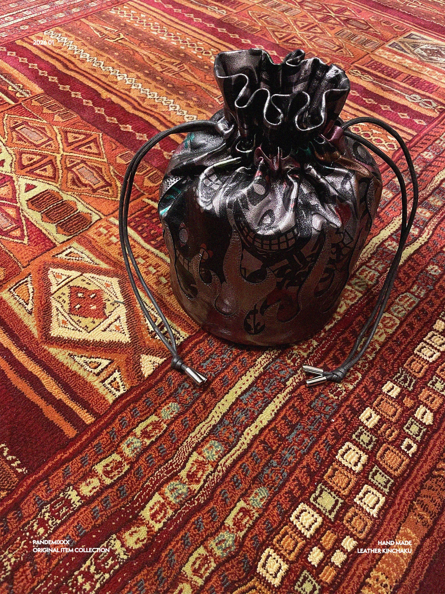 SILVER LEATHER PAINT DESIGN KINCHAKU