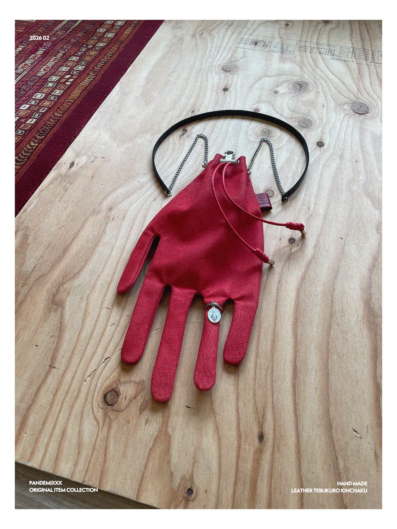 手袋型の本革巾着バッグ。