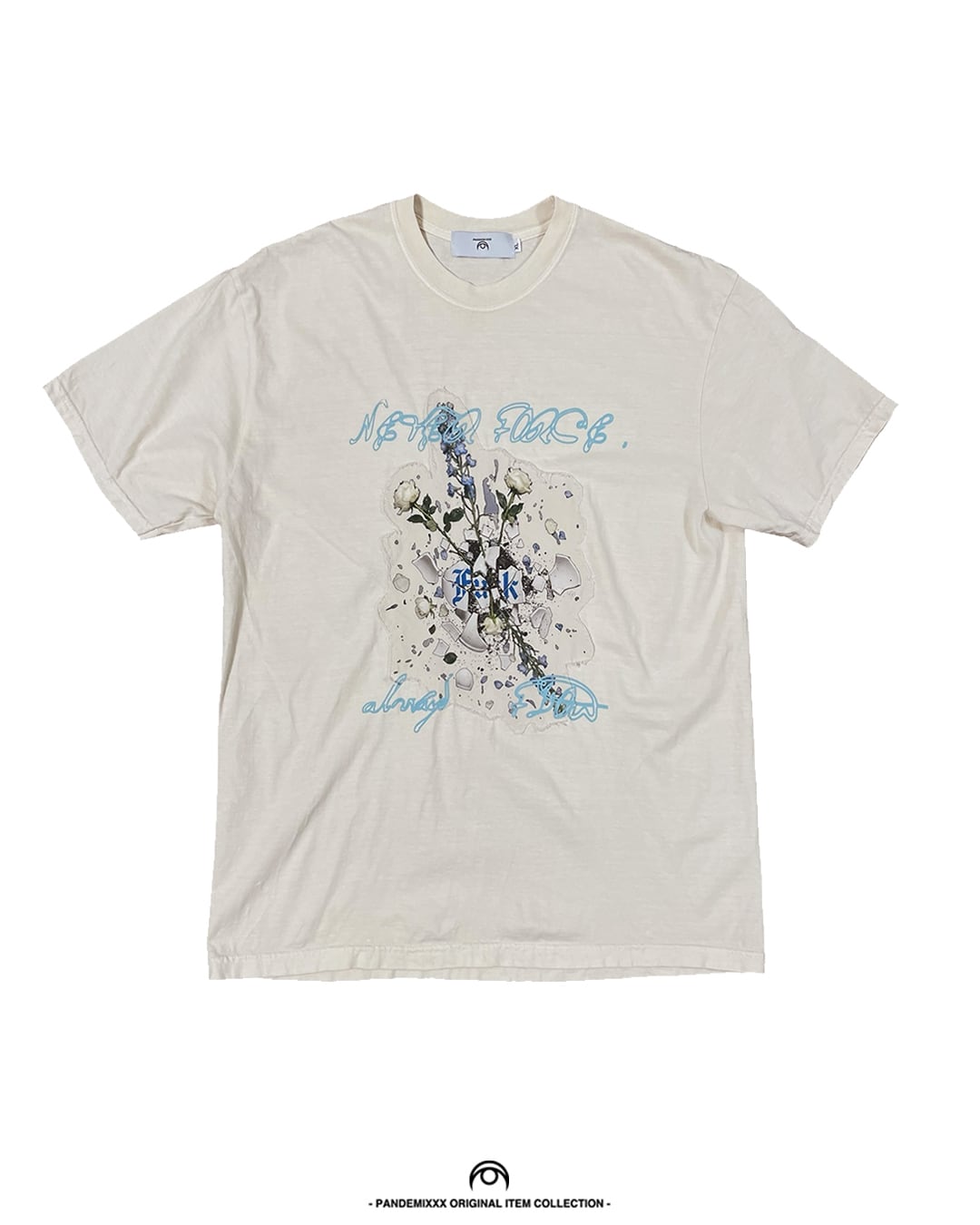 割れた花瓶が特徴の「No More Noise」は、製品染めソフトウォッシュ加工が施されており、着るたびに独自の風合いが生まれます。洗濯ネットでのお手入れが可能で、取り扱いも簡単です。また、色移りの可能性がありますので、他の衣類とは分けて洗うことをお勧めします。長く愛用できる一枚を、ぜひお楽しみください!
