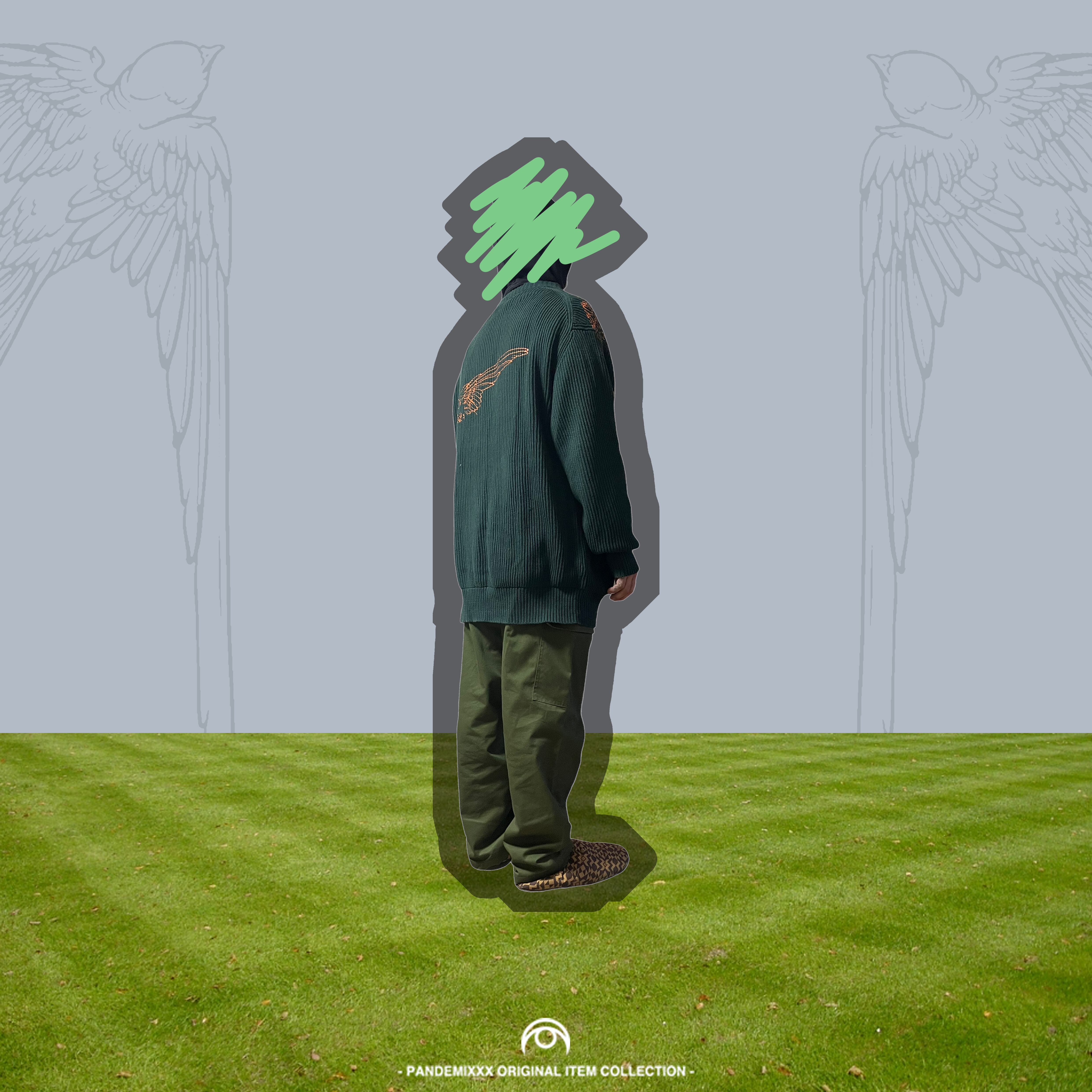 ツバメのデザインをプリントし胸にXのレザーパッチを施したカーディガンです。コットンニット素材なので、着用シーン・コーディネートの幅・通年着用できる万能アイテム。